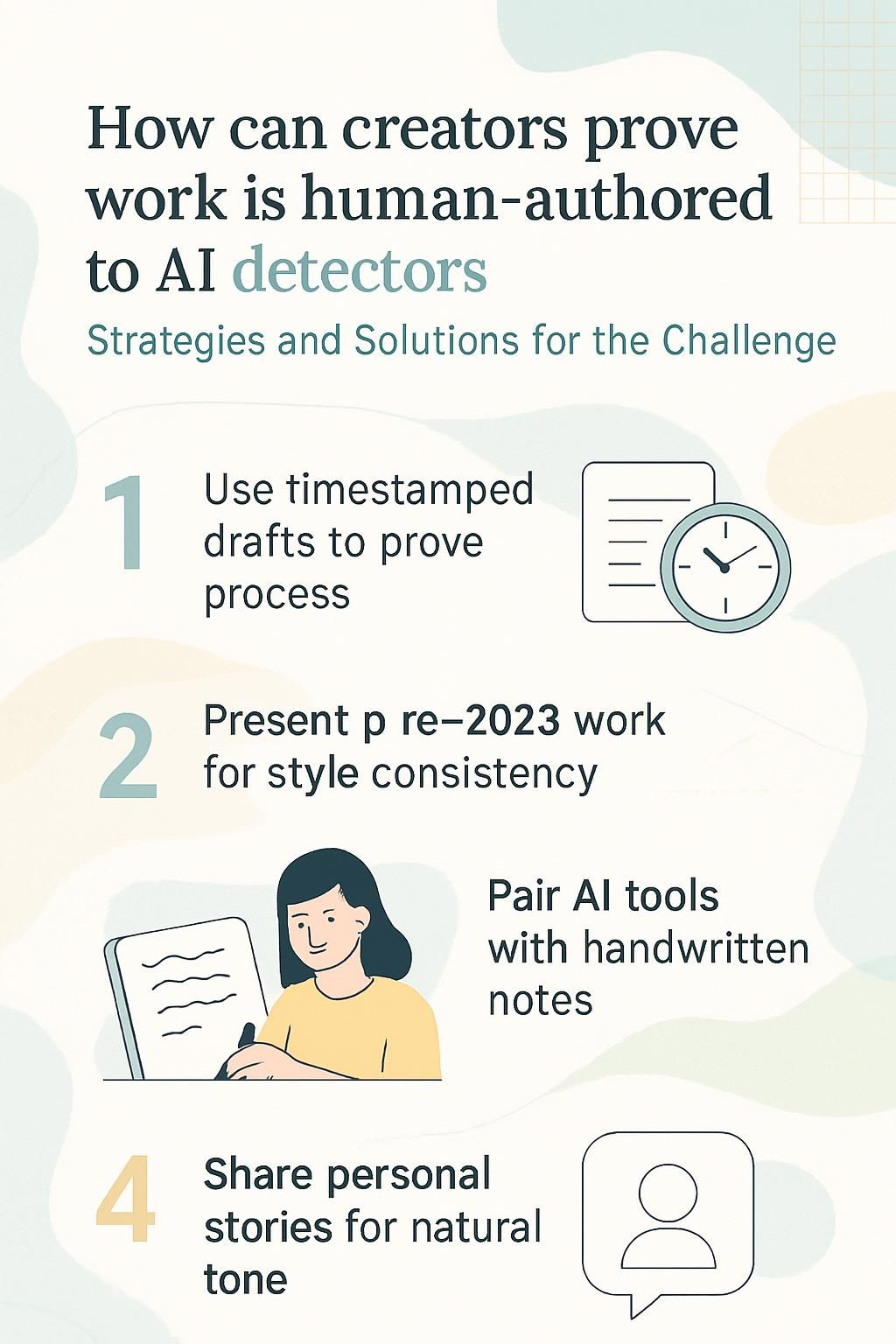 Authors can submit timestamped drafts showing their writing process. These drafts act as clear evidence of human effort. Include handwritten notes or outlines if possible, as they are hard to replicate by AI tools.